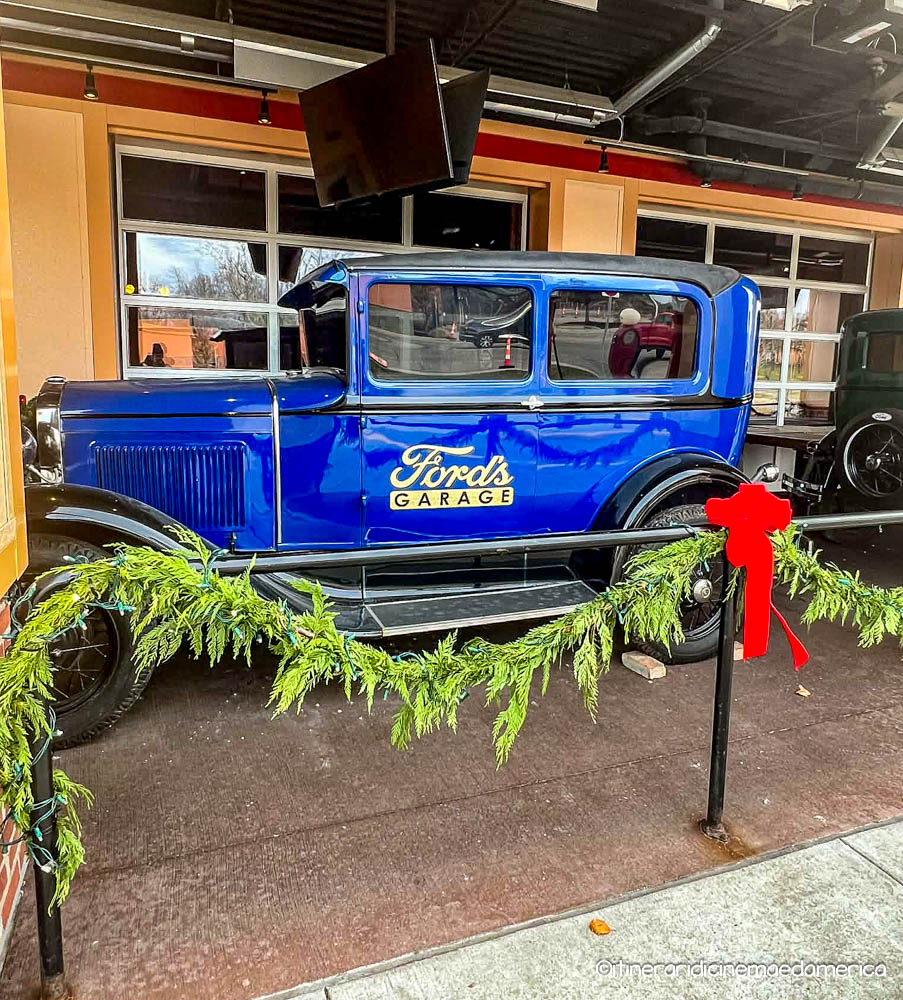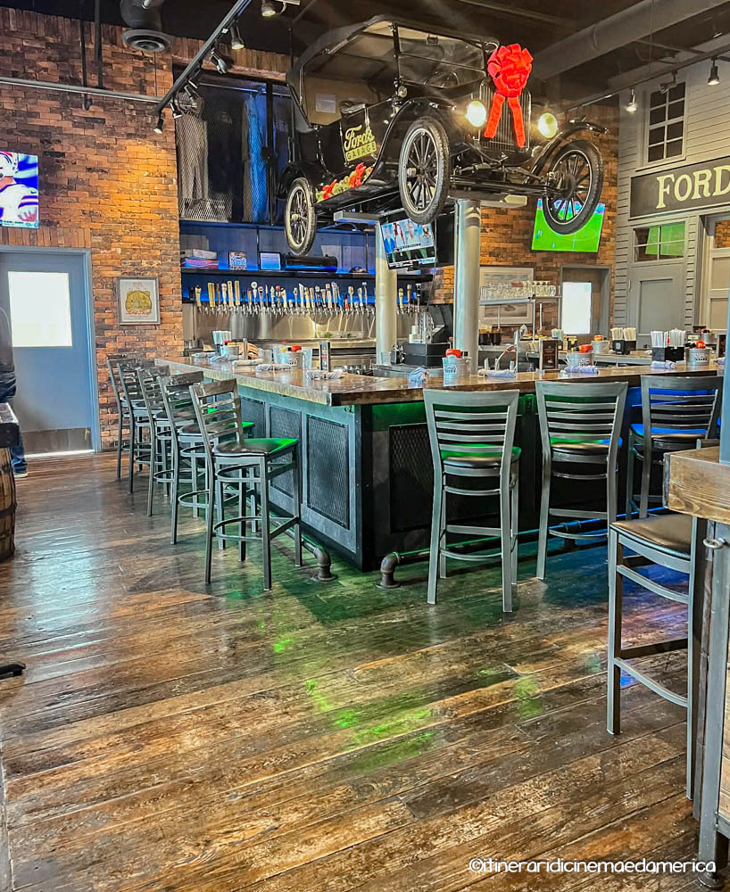 Infine, un consiglio gastronomico fortemente legato alla Ford: il Ford’s Garage Restaurant, l’unico ristorante ufficialmente autorizzato dalla Ford Motor Company. Anche qui si fas un tuffo indietro nel tempo, ritrovando in una tipica stazione di servizio degli anni Venti. Sospesi sopra l’enorme bancone in rame o parcheggiati direttamente tra i tavoli, troneggiano veri veicoli d’epoca, come le storiche Model T e Model A, con tanto di fari accesi. Ogni dettaglio è curatissimo e, ovviamente, marchiato Ford (perfino i panini!): i lavandini dei bagni sono ricavati da vecchi pneumatici con l’acqua che sgorga da vere pistole per il rifornimento di benzina, i tovaglioli sono i classici stracci blu da officina arrotolati dentro vere fascette stringitubo in metallo e i camerieri servono ai tavoli indossando camicie da meccanico.